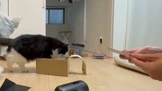 390 段ボールの切れ端に夢中