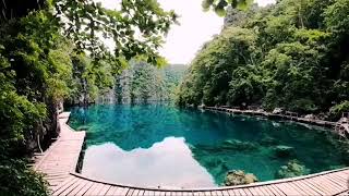 -Relaxing rain forest music with birds and water sound nature meditation and nature background video.