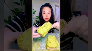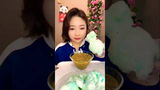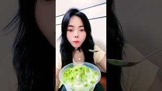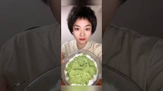 ASMR ice eating with matcha and coconut milk powder