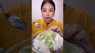 ASMR ice eating with matcha and milk powder