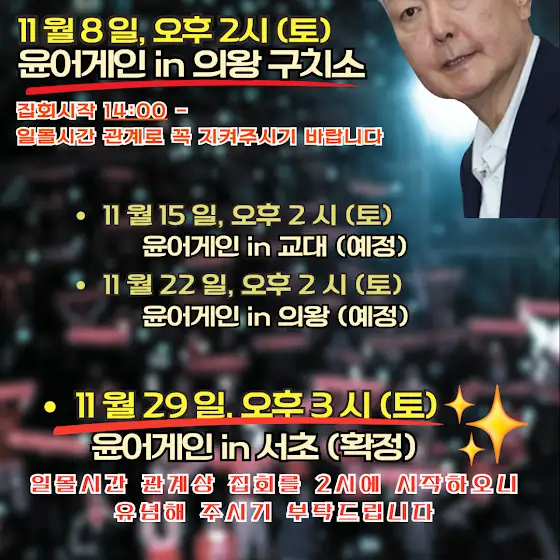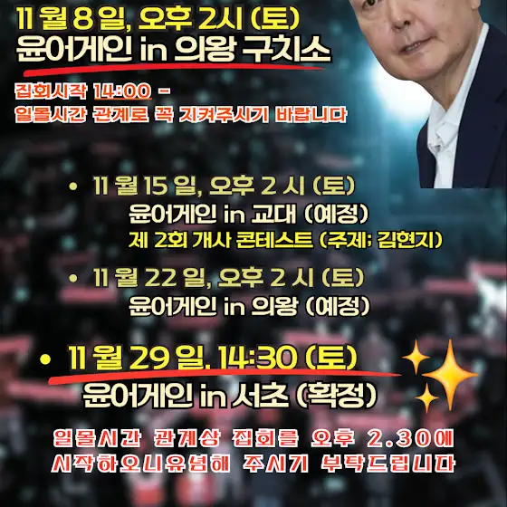 1.청년이 시민을 계몽한다 일산편! 재판중지법이라?! 하나 못하나 안하나?! 2. 정의를 세우자 시민의 목소리 4.관세합의?!진실이 뭔가요