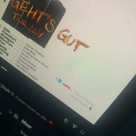 Hallo YouTube… ich gehe nächstes Jahr im März auf die „MIR GEHT‘S GUT“-Tour Wer kommt und wieso kommt irgendjemand überhaupt nicht? Ist es ein persönliches Problem zwischen uns oder was hab ich dir getan?