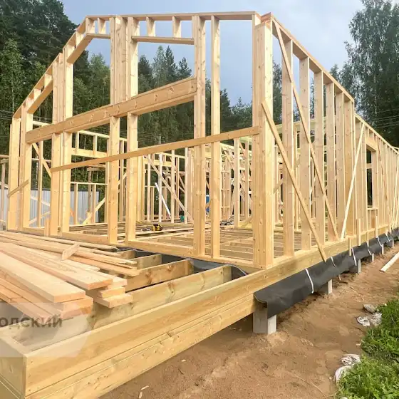 Процесс сборки одноэтажного каркасного дома размером 8х14,5м в Гатчинском районе, СНТ Лиижтовец