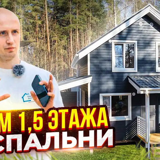 В этом обзоре вы увидите 1,5 этажный дом в комплектации с внутренней отделкой.