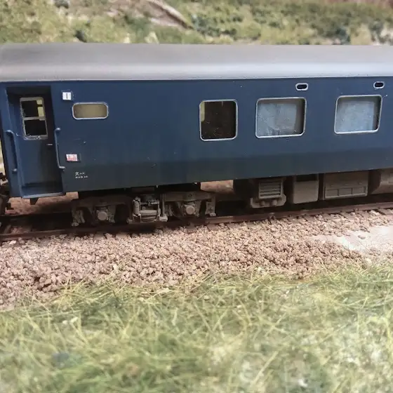 オロネ10。古い古い天賞堂のブラスモデルで中身何にもないモデルで、Hゴムの塗装すらなくてそのままでは何とも・・・なモデルなんで少しはましになったような・・・A寝台のインレタは手元にないので後日・・・IMONカプラーは用意してありますがまだ未装着。なんとベーカーカプラーが付いてたほどの旧さ