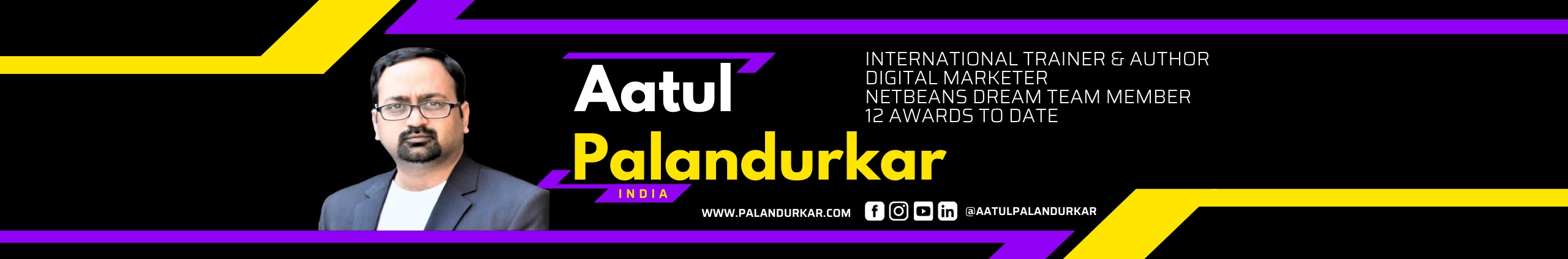 Aatul Palandurkar is an International Trainer, Author and Digital Marketing Expert turned Life Coach. He is NetBeans Dream Team Member. Aatul has received 12 awards to date. He has trained and transformed the lives of more than 500000 people globally and with huge clientele all across the globe. His clients include Actors, Politicians, Life Coaches, Trainers, Healers, Therapists, Entrepreneurs, Startups, Businessmen, Housewives, Students, etc.