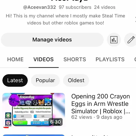 Hi! This is my channel where I mostly make Steal Time videos but other roblox games too!