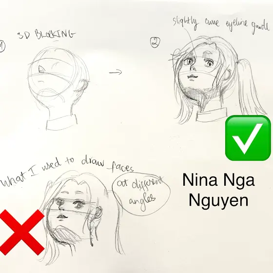 I've just found out the right way to draw a face looking up! I tend to draw fast and skip drawing the guidelines in my drawing process. Hope you find it helpful! 😊