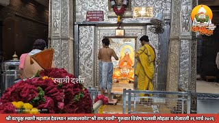 श्री वटवृक्ष स्वामी महाराज देवस्थान अक्कलकोटचे मुख्य पुजारी मा.श्री मंदार (गुरुजी) मोहनराव पुजारी यांच्या विशेष प्रयत्नातून स्वामींची काकड आरती, नैवेद्य आरती व रात्रीची शेजारती घर बसल्या सगळ्यांना पाहता येइल रोजची आरती युट्युब वर प्रसारती होणार आहे ज्यांना ज्यांना घरबसल्या स्वामींचे दर्शन घायचे असेल त्यांनी "Swami Darshan" या युट्युब चॅनेल ला सबस्क्राईब करून नोटिफिकेशन ऑन करावी तसेच स्वामींचे रोजचे वस्त्रअलंकाराचे फोटो इंस्टाग्राम @swami_darshan_1771या पेज वर प्रसारित होणार आहे या पेज फॉलो करावे आणि सगळी कडे शेअर करावे