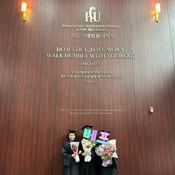 샬롬✨️12.12 한동대학교 로스쿨 졸업식이 있었습니다☺️사실... 제 졸업식은 아니었구요😚제 동기들이 이번에 졸업을 하고,내년 2월에 미국으로 다들 시험을 치러 갑니다.이렇게 졸업하면,다시 만나기가 쉽지 않을 것을 알기에편지도 쓰고, 작은 선물도 전달하며,지금까지 감사했던 마음들을 조금이나마표현을 할 수 있었던 귀한 시간이었습니다.저는 내년 6월 초에 졸업 예정인데,오늘 왜 학사모를 썼는지궁금하실 수도 있을거 같은데요🤭제 친한 동기가저는 6월 졸업 하면, 정식 졸업식도 없고 해서같이 찍는 사진 없으면 아쉬울꺼 같다고...ㅎㅎ그래서!!오피스에서 옷을 빌려서저도 가운 입고, 학사모 쓰고 사진을 찍었습니다.저에게는 뭐랄까?이번이 세미 졸업식 같은 느낌이었는데,조금씩 더 졸업 전에공부에 대한 마음도 다잡고,학교의 생활도 조금씩 잘 마무리 해보자 하는그런 마음이 드는 시간이었어요☺️학교 다니면서 만난귀한 동역자들을 주신하나님께 감사드리는 시간이었습니다🥰할렐루야✨️주님 이들을 예수한국 복음통일의기둥들로 다 세워주시옵소서🔥🇰🇷🇺🇸