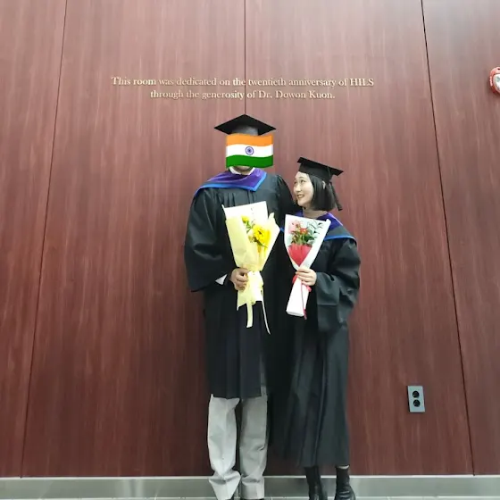 저도 가운 입고, 학사모 쓰고 사진을 찍었습니다.