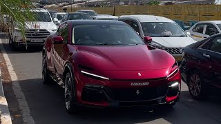 AKASH AMBANI DRIVING HIS SECOND NEW FERRARI PUROSANGUE SUV WITH SECURITY IN MUMBAI l SUPERCAR MUMBAI