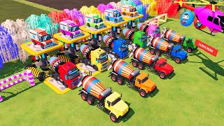 Garage with Colors - ALL CEMENT MIXER TRUCK Convoy with Lowboy Trailer, SCANIA, MAN, KENWORTH - FS22