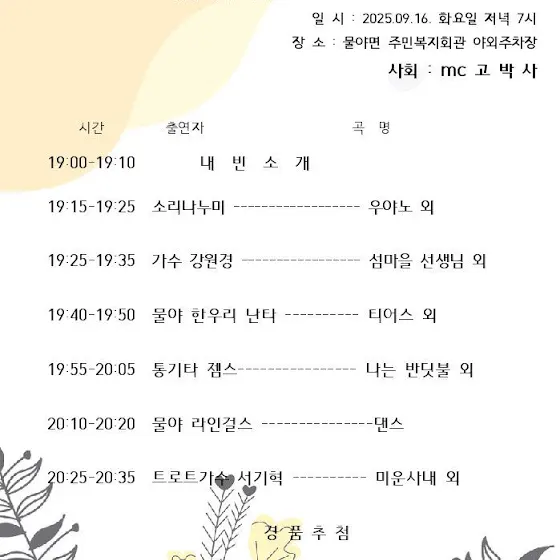 오늘 봉화 물야면 공연왔습니다