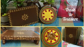 See how i turned old cardboard to a corner decor stool | Corner Decoration ideas for Diwali | Diwali