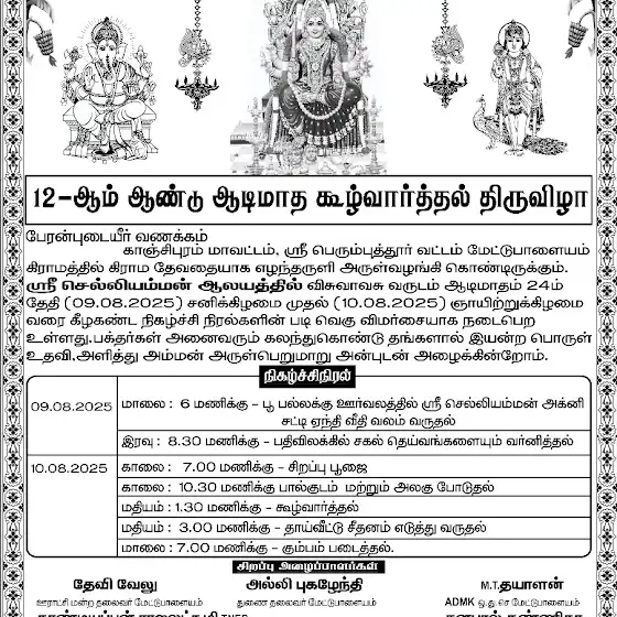 ஆடி கூழ் வார்த்தல் 2025 செல்லியம்மன் அருள்வாக்கு திருக்கோயில் ஒரகடம்
