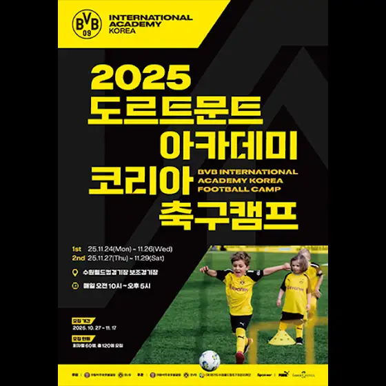 도르트문트와 함께 한국에서 2025 도르트문트 아카데미 축구 캠프를 진행 할 예정입니다!