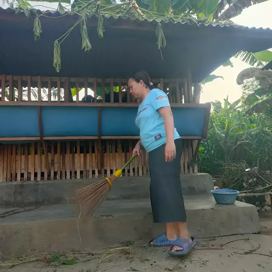 Ynag lagi viral peternak perempuan sedang bersihkan kandang