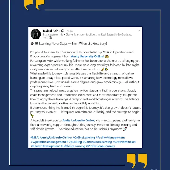 #AmityOnline #AmityUniversityOnline #AmityUniversity #Indias1stOnlineUniversity #OnlineUniversity #OnlineLearning #MBA #LearnerSpotlight #FutureReady #InspiringJourneys