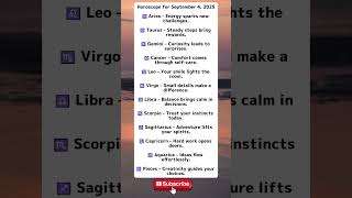 Horoscope for September 4, 2025 #Horoscope #Zodiac #Astrology #DailyHoroscope #StarSigns #AstroVibes