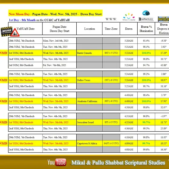 Shares how the moon will be fully restored towards the end of the 29th day, the final day of the 7th month, towards the dawn (a true Scriptural day start), and yes, will greet the sun at dawn, let alone sunrise (this does not happen always for everyone), for the three time zones mapped out, helping to reveal why the pagan day of Wed, Nov. 5th, 2025 at dawn will be the first day of the 8th month on the CC&C of YaHUaH.