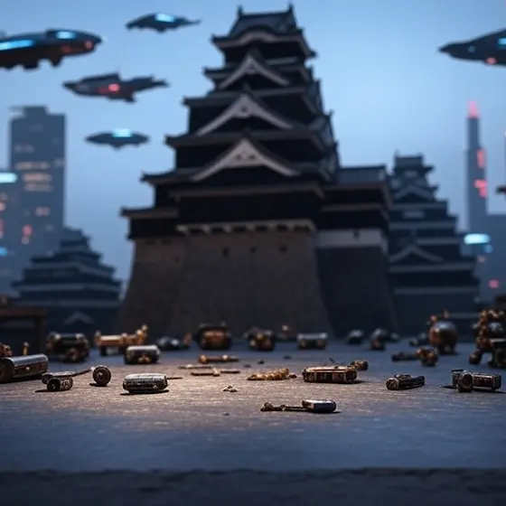 サイバーパンク風味熊本城、grokに描いてもらいました。