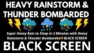 99.99% Goodbye Stress to Sleep Instantly with Torrential Rainstorm & Powerful Thunder | Black Screen