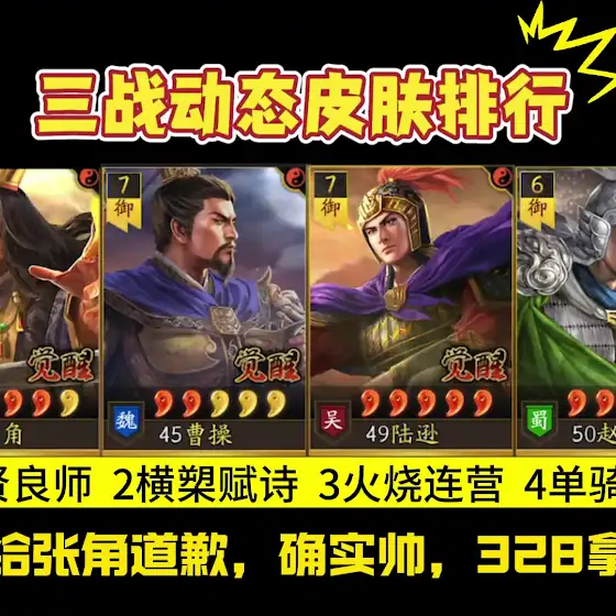 【三戰動態皮膚排行】我給張角道歉,確實帥啊!必須刷卡!