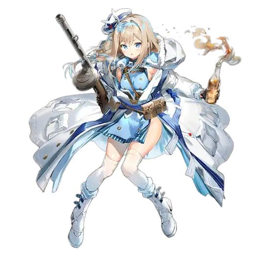 Suomi attacks at random enemies and applies 1 Frost stack. Every 4s, she deals 10% Current HP damage (capped at 100k damage) to all enemies with Frost stacks and lowers their EVA, ROF and Movement Speed by 10%, removes all Frost stacks.