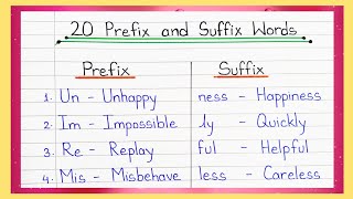 20 Prefix and Suffix In English || Suffix and prefix || Prefix Words || Suffix Words | Prefix suffix