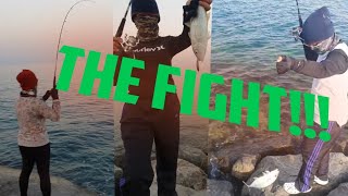 Lady 's Fight with huge fish!!... Shore casting
