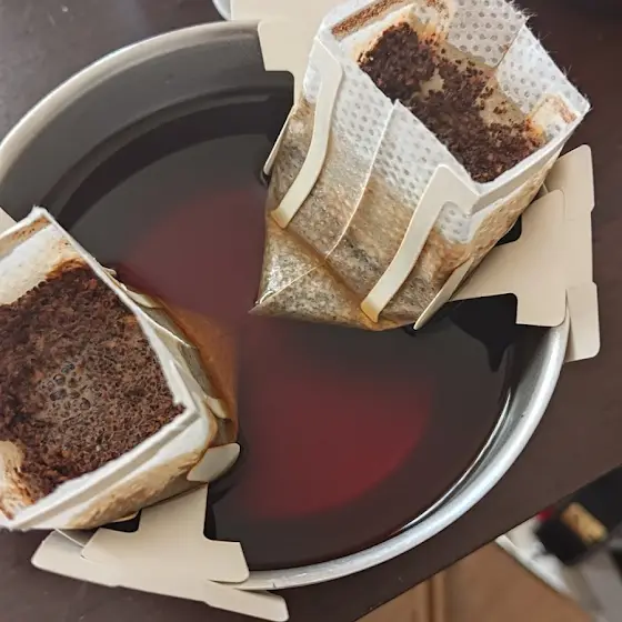 買到很難喝的濾掛咖啡要怎麼辦呢我知道了 一次泡兩包這樣不只可以借著濃度掩蓋缺點 也能加倍消耗的速率呢燃燒吧 我的客家之魂