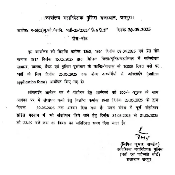 Police Constable 2025 पदनाम में छुट