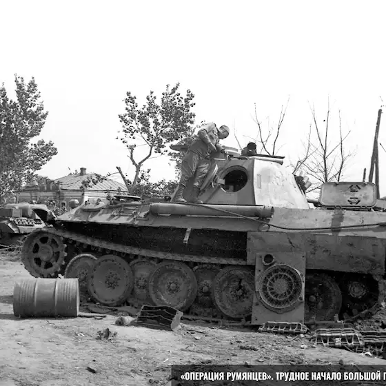 На снимках бойцы 97 Гв.СД 5 Гв.А осматривают те самые «Пантеры».
