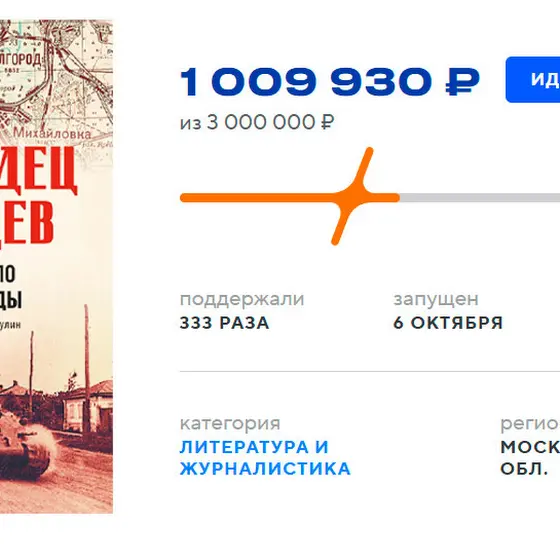 Только что мы преодолели важный барьер на нашем нелегком пути. Сбор средств на издание книги Валерия и Виктора Замулиных перевалил за первый миллион, что составляет треть от нашей цели. Это произошло благодаря вашей поддержке, за которую хотим вас сердечно поблагодарить.