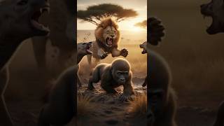 Gorilla and Lion Save African Man from Deadly Anaconda|Epic Wildlife Story in 4K#shorts #viralshorts