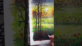 How to paint daisy & poppy flower. Easy acrylic painting for beginner/flower landscape step by step.