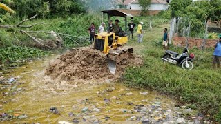 COMPLETE100% Fill LOWLAND In Flooded Village by Bulldozer Komatsu Pushing, Dump Truck Unloading Soil