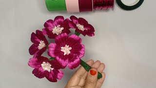 DIY|| How To Make Satin Ribbon Flower Easy|| cara membuat bunga dari pita satin mudah dan mudah #259