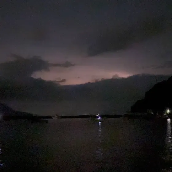 夕方からアオリイカ新子釣りをまっきーさんと。そろそろトンカツサイズもいるんじゃないかと思ったけど、暑すぎたのか全く気配なし。暗くなった頃に、ようやくコロッケサイズ。続けて釣れるかと思いきや…そうでもない。雲放電が凄いし雨も降りそうだったので、コロッケ1個で帰路に着いた。