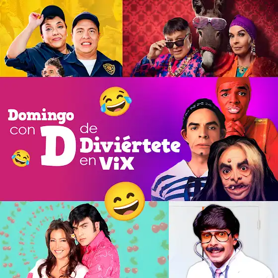 Domingo de diversión en ViX 🎉📺 Te recomendamos estos 5 contenidos para que tu día esté lleno de risas 😂✨.