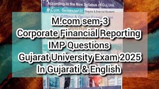 Financial Accounting and Auditing IMP | M.com sem 3 | Gujarat University Exam 2025 |Gujarati English
