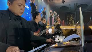 PoV pianist playing song Groom dance with Mother and bride dance with Father, wedding dance and kiss