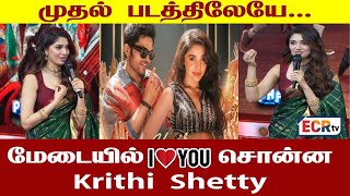 மேடையில் "I LOVE YOU" சொன்ன Krithi Shetty | Shocking Fan Moment with Karthi at Vaa Vaathiyaar, ECRTV