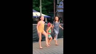 Amelia riding her bicycle.