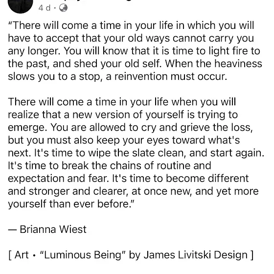 It’s a pretty fitting moment on this timeline to read this. It’s so aligned with my journey right now.