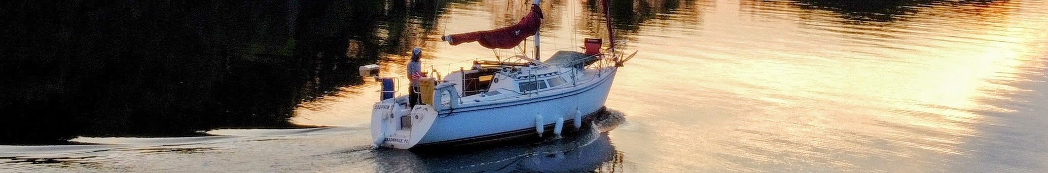 Catalina 28 motoring the St John's River at Sunset