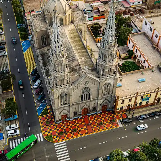 Así de bonita luce desde los cielos esta hermosa iglesia ubicada en Magdalena! 🥹✨🇵🇪