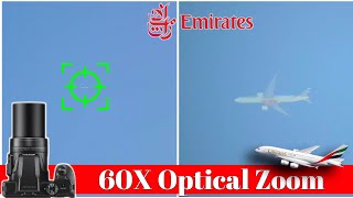 Emirates Jet Spotted with 60X Optical Zoom. Incredible High Altitude Zoom Test with superzoom camera