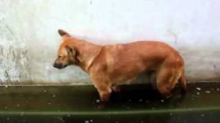 水に浸りながら眠ってしまった犬